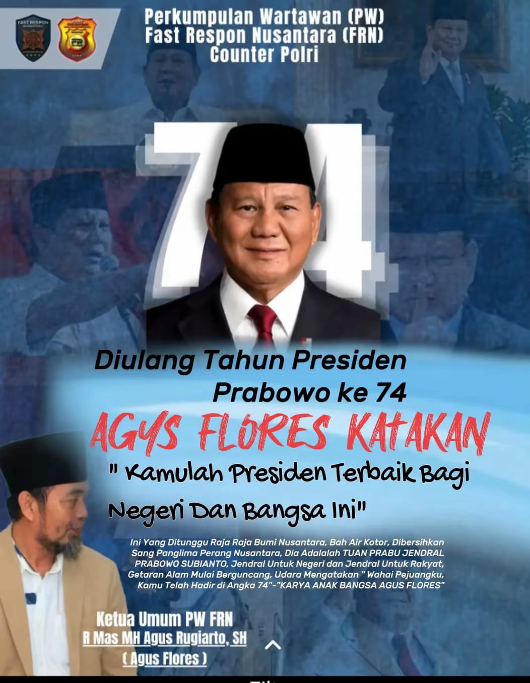 Ketua Umum PW. Fast Respon Nusantara (FRN) Agus Flores Persembahkan Puisi di Ulang Tahun Presiden Prabowo ke-74