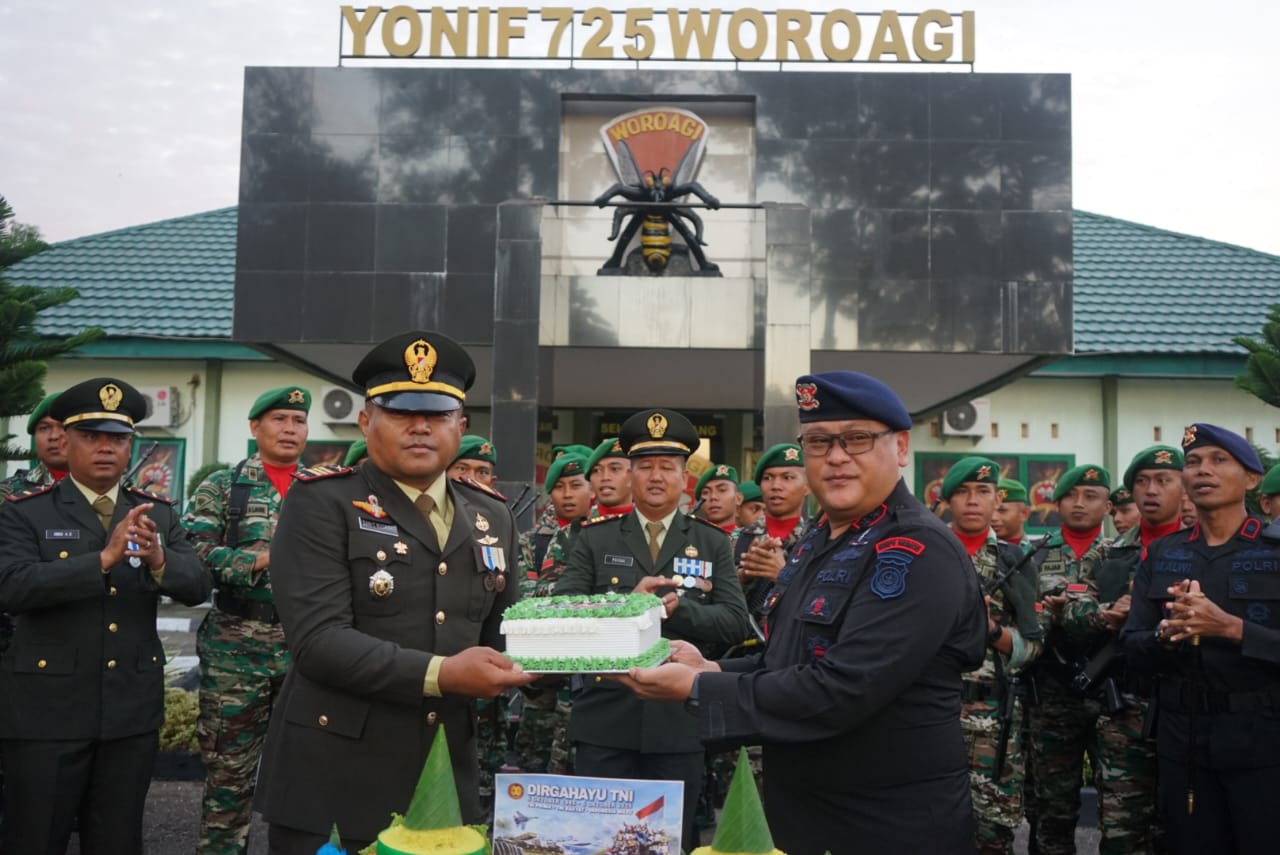 Kehadiran personel Brimob Polda Sultra tersebut disambut hangat oleh keluarga besar Yonif 725/Woroagi. Dalam kesempatan itu, Komandan Batalyon 725/Woroagi, Letkol Inf Choky Gunawan, S.Sos., M.Han., menyampaikan rasa terima kasih dan apresiasi atas kejutan yang diberikan oleh jajaran Brimob Polda Sultra.