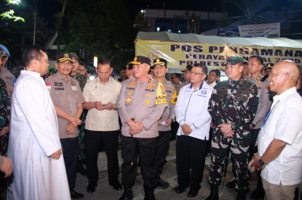 kpkmsultra.com-Banjarmasin, – Malam perayaan Natal, Kapolda Kalimantan Selatan Irjen Pol Rosyanto Yudha Hermawan, S.I.K., S.H., M.H., memimpin langsung pengecekan dan monitoring kesiapan pengamanan di sejumlah gereja di Kota Banjarmasin, Rabu (24/12/2025) malam.