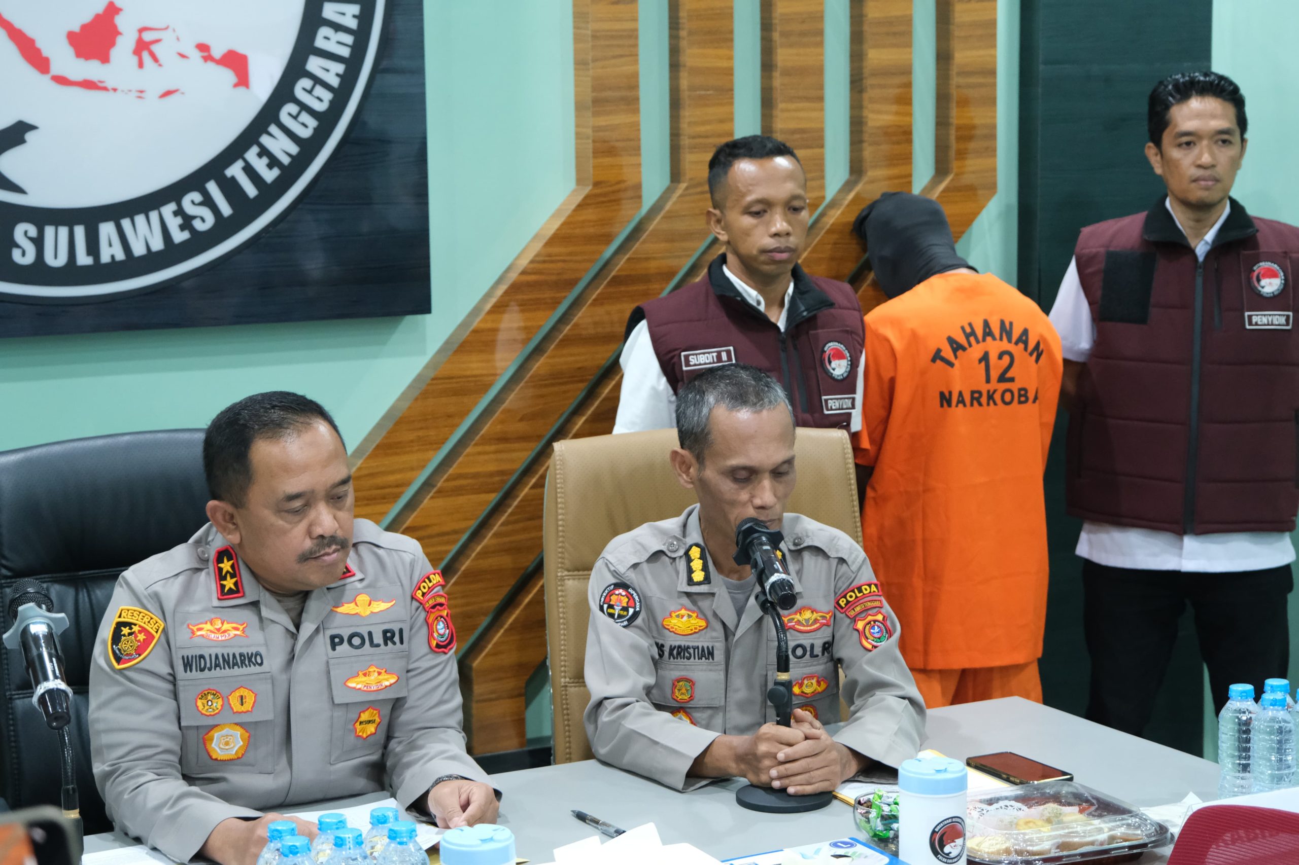 Kapolda didampingi oleh Dir Narkoba Kombes Pol. Bambang Sukmo Wibowo, S.I.K., S.H., M.Hum., dan Kabid Humas Polda Sultra Kombes Pol Iis Kristian, S.I.K.