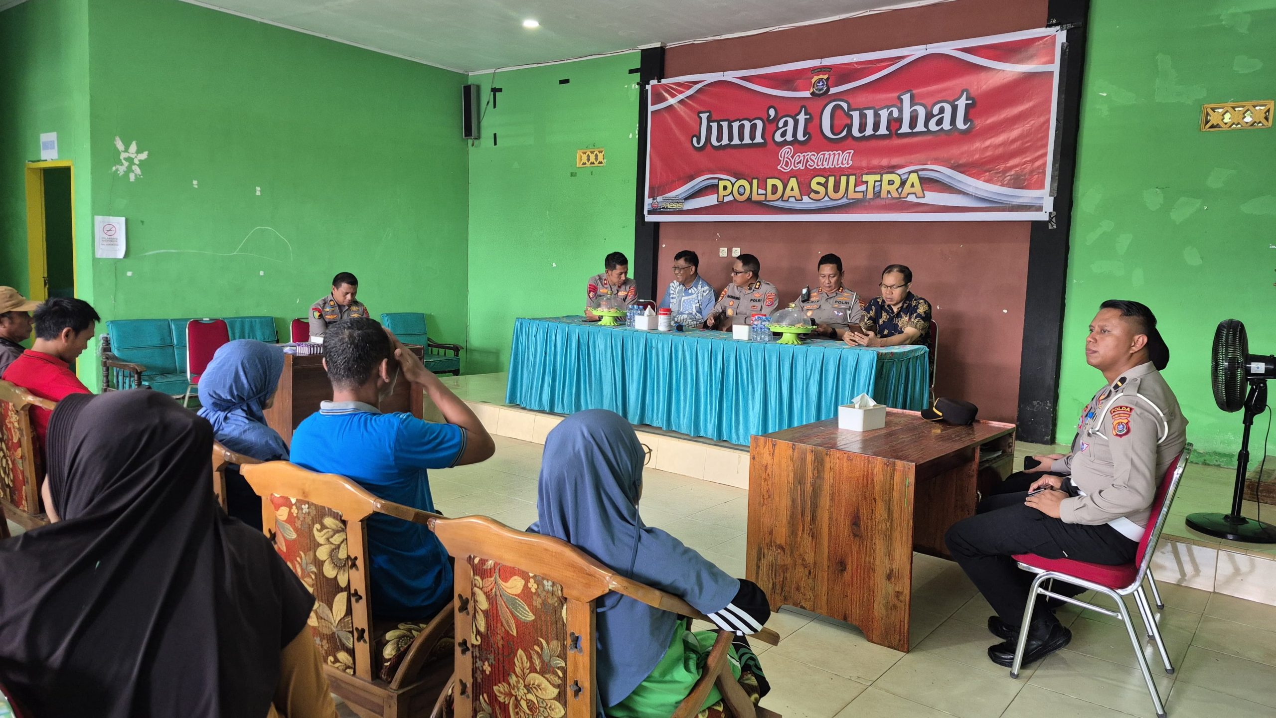 Kegiatan ini dipimpin oleh AKBP Darmono, S.Pd., M.Si., selaku Wadirpamobvit Polda Sultra, dan dihadiri sejumlah pejabat dari berbagai direktorat Polda Sultra serta unsur pemerintah kelurahan. Sebanyak 25 tokoh masyarakat turut hadir untuk menyampaikan aspirasi dan keluhan terkait situasi kamtibmas di wilayah mereka.