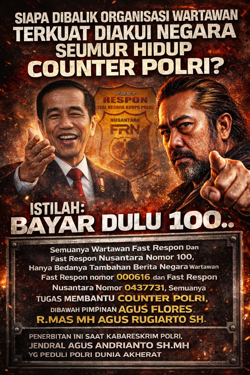 kpkmsultra.com-Jakarta – Perkumpulan Wartawan Fast Respon Nusantara (PW-FRN) menegaskan eksistensi dan legalitas organisasinya sebagai wadah wartawan yang loyal kepada Korps Kepolisian Republik Indonesia (Polri) serta berperan membantu counter informasi terhadap isu-isu yang dinilai merugikan institusi Polri.