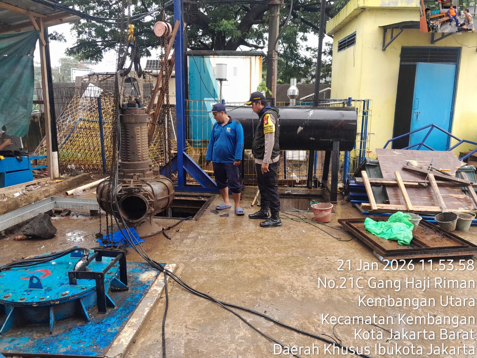 ” Berdasarkan hasil koordinasi dengan petugas rumah pompa, Bapak Adam, diketahui bahwa ketinggian air Kali Angke saat ini berada di angka 170 cm, mengalami kenaikan dari kondisi normal sekitar 50 cm, namun masih dalam batas aman. Selain itu, kondisi dua unit mesin pompa dinyatakan berfungsi dengan baik dan optimal, ” ujar Aiptu Bambang Harwanto