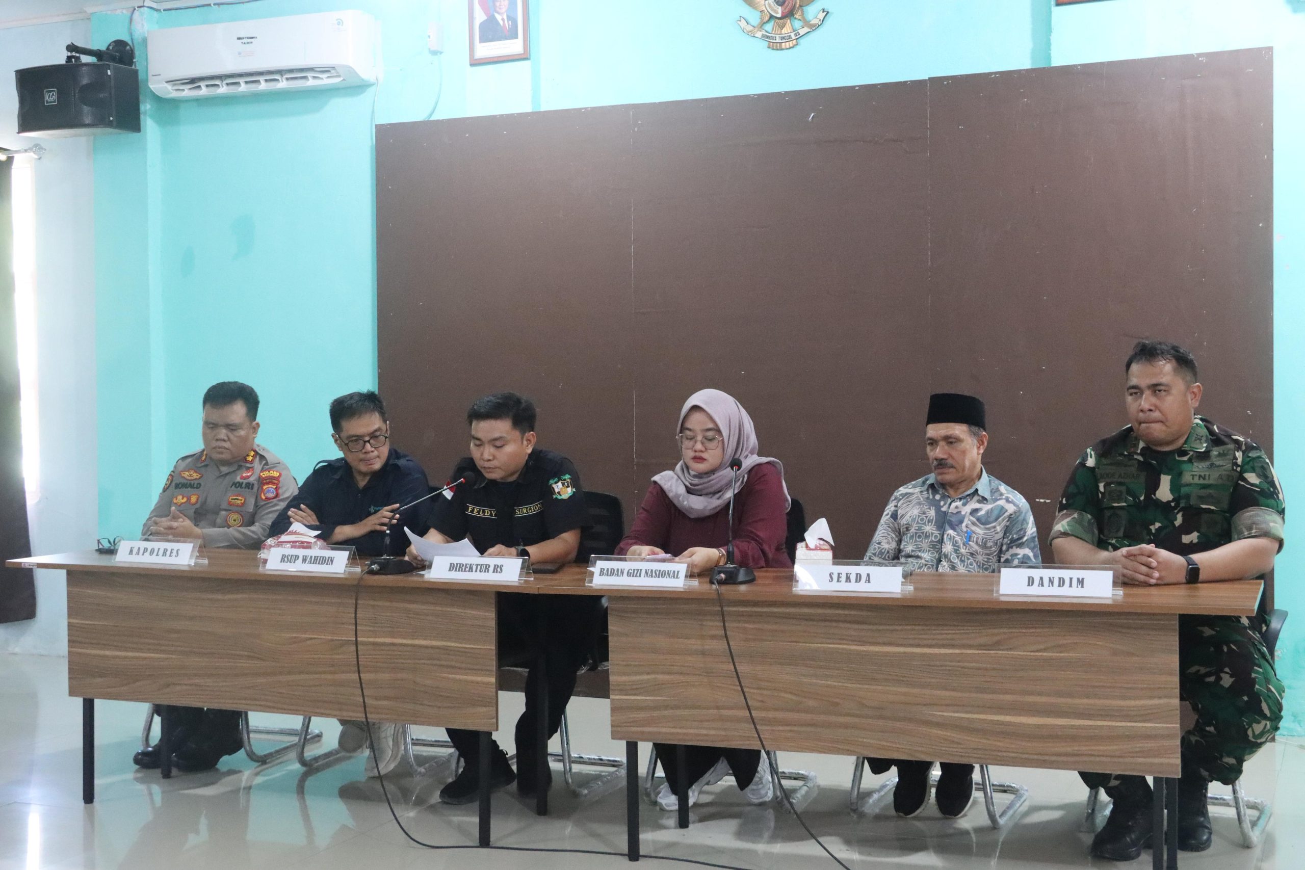 Konferensi pers berlangsung di Ruangan Posusungan RS Trikora Salakan, Sabtu (20/9/2025). Hadir dalam kesempatan itu Kapolres Bangkep AKBP Ronaldus Karurukan, bersama tim yang terdiri dari Fatimah Zahra selaku Tenaga Ahli Komunikasi BGN.