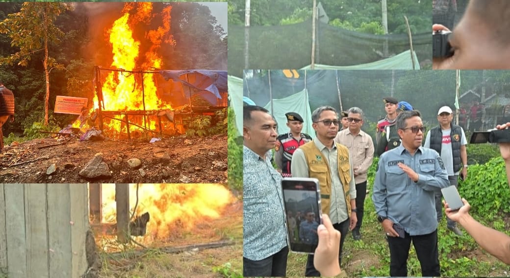Saat tiba di lokasi, aktivitas tambang sudah tidak lagi berlangsung. Namun, tim terpadu masih menemukan sejumlah peralatan bekas penambangan. Untuk mencegah aktivitas serupa kembali terjadi, tim memasang spanduk larangan serta memusnahkan barang temuan dengan cara dibakar.