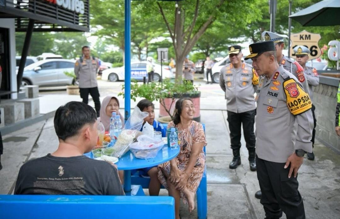 Interaksi Humanis dan Pesan Keselamatan Di sela peninjauan, Irjen Pol. Rudi Setiawan menyapa langsung para pemudik yang sedang beristirahat. Dengan pendekatan yang humanis, jenderal bintang dua ini berdialog mengenai kondisi perjalanan serta memberikan imbauan terkait pentingnya menjaga kesehatan fisik selama berkendara jarak jauh.